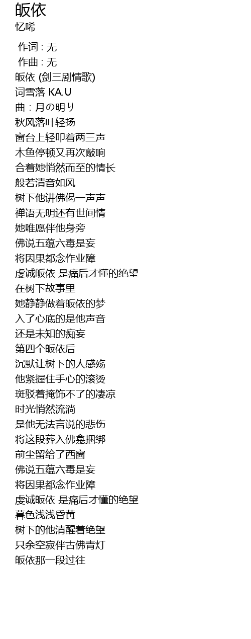 | [00:00.178] | 皈依 (剑三剧情歌) |