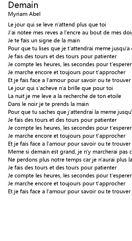 Pour que tu saches que j'attendrai la meme jusqu'a demain |