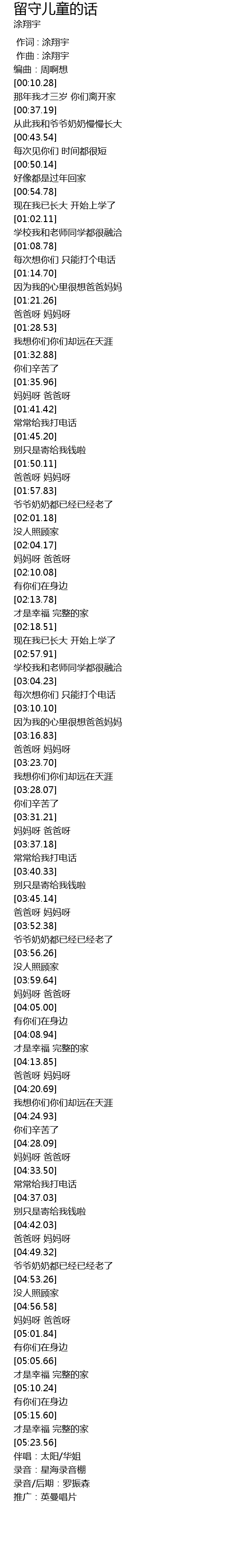 | [00:00.000] | 作词 : 涂翔宇 |