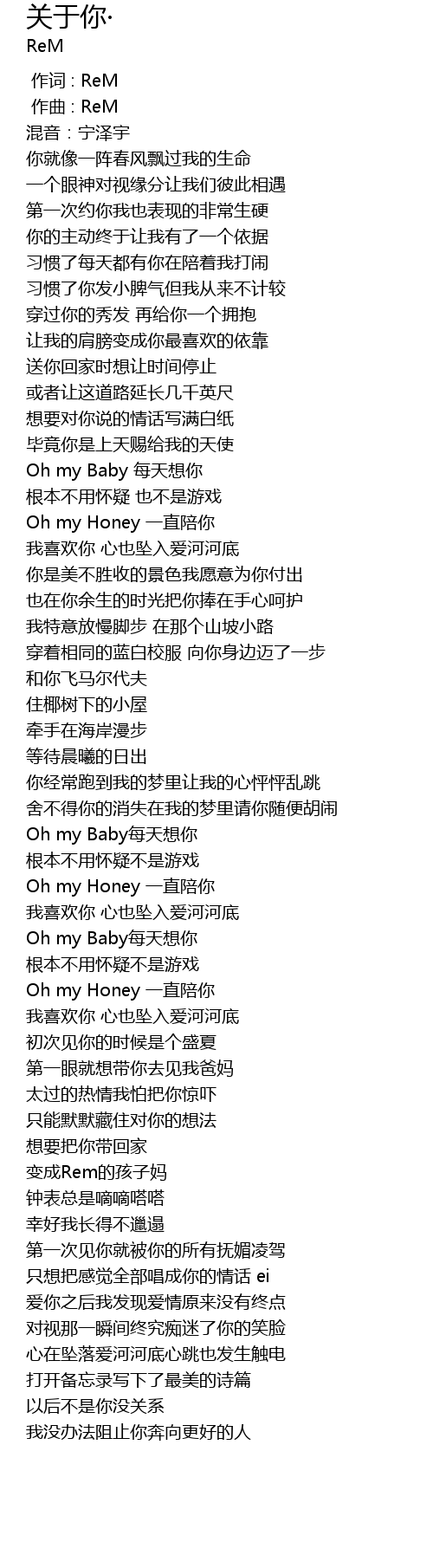 | [00:52.363] | Oh my Baby mei tian xiang ni |
