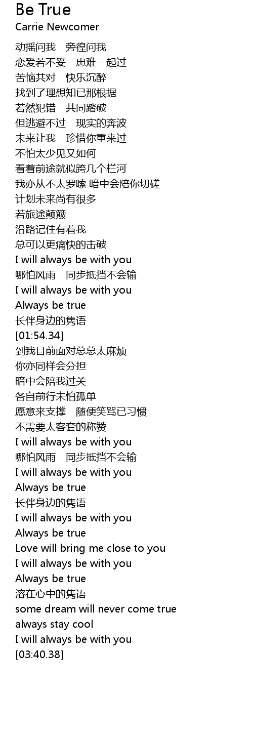 | [02:54.64] | Always be true |