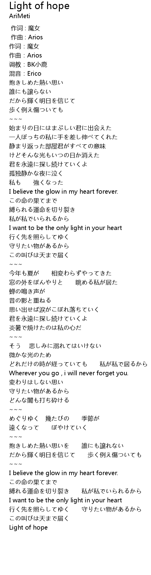 | [04:00.780] | Light of hope |