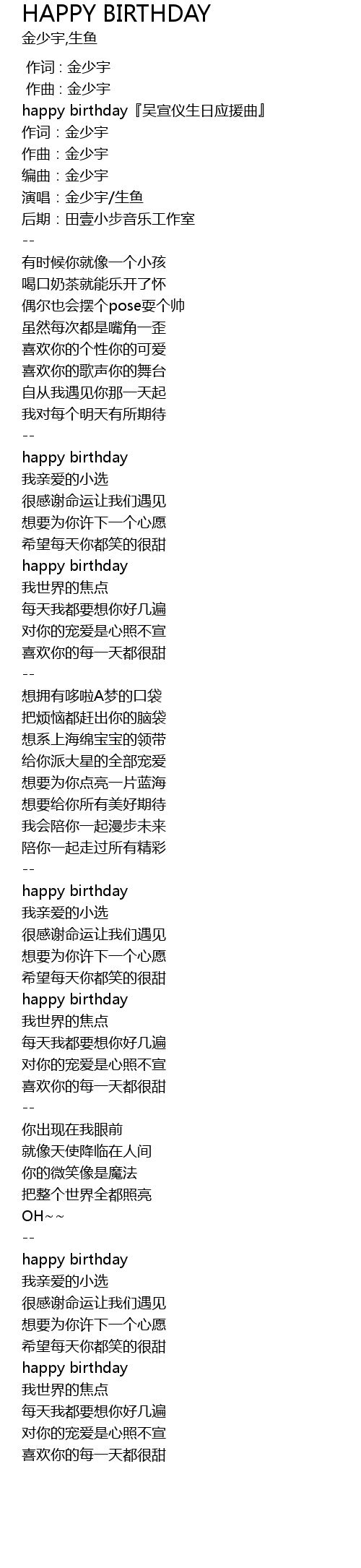 | [00:01.308] | happy birthday wú xuān yí shēng rì yìng yuán qū |