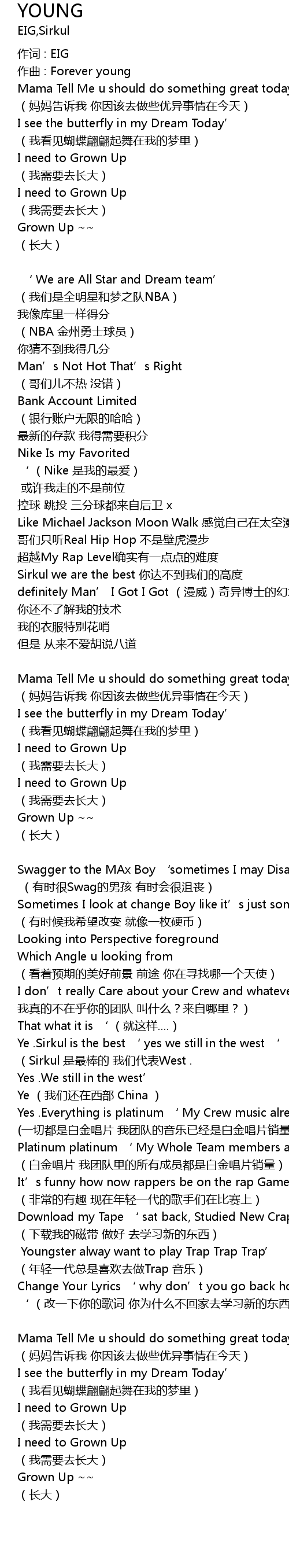 | (妈妈告诉我 你因该去做些优异事情在今天) | |