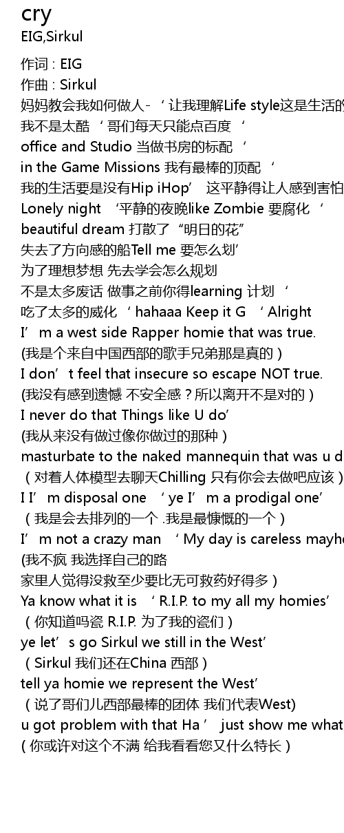 | wo de sheng huo yao shi mei you Hip iHop' zhe ping jing de rang ren gan dao hai pa' | |