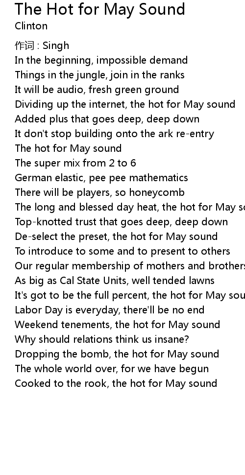 | Song | The Hot for May Sound |