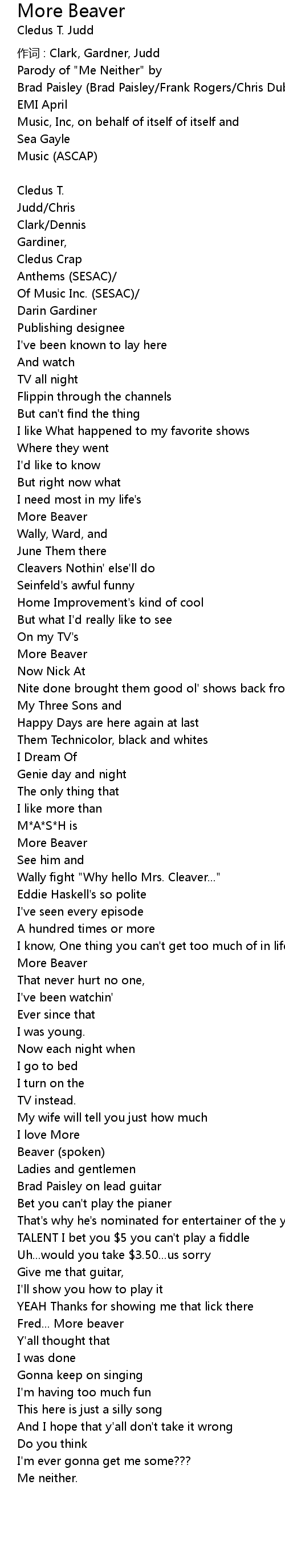 | Song | More Beaver |