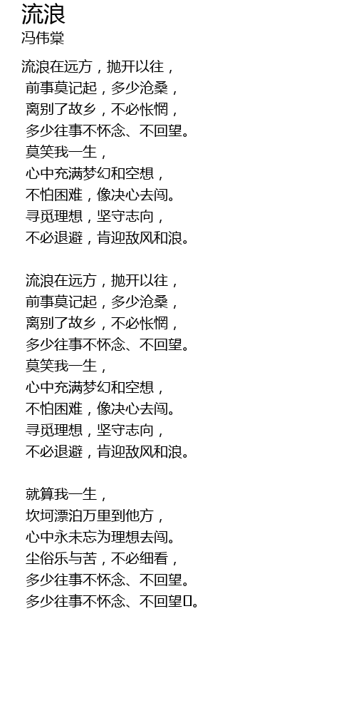 | liú làng zài yuǎn fāng, pāo kāi yǐ wǎng, | |