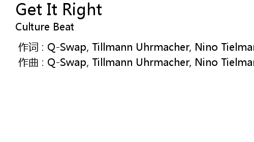 | [00:00.000] | 作曲 : Q-Swap, Tillmann Uhrmacher, Nino Tielman, Frank Bülow |