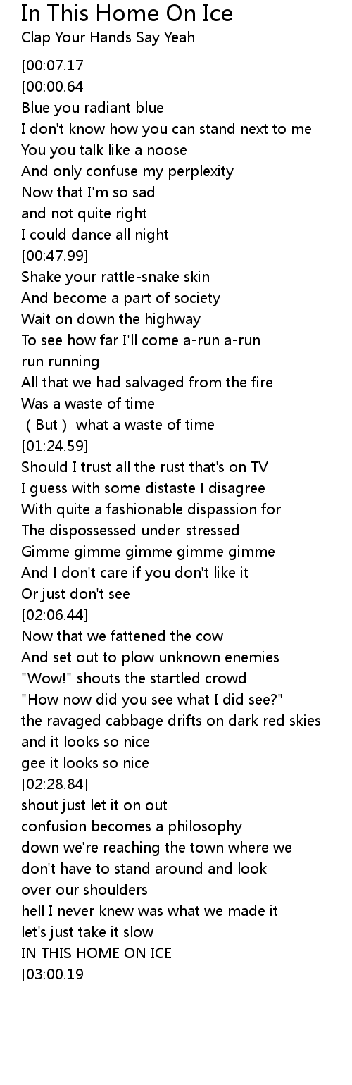 | [03:09.52][00:07.17] | Album: Clap Your Hands Say Yeah |