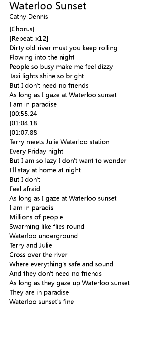 As long as I gaze at Waterloo sunset |