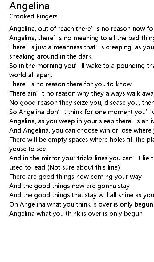 | Angelina, as you weep in your sleep there' s an ivory glow | |