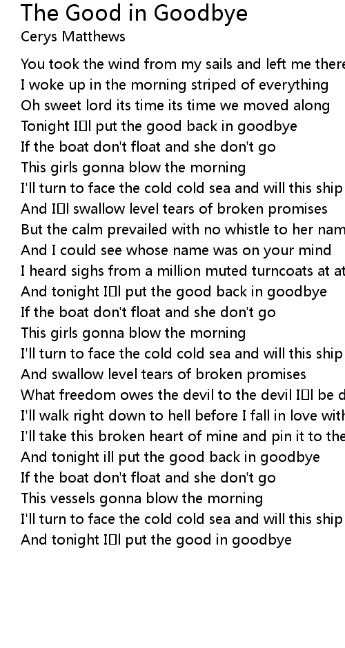 | And tonight ill put the good back in goodbye | |