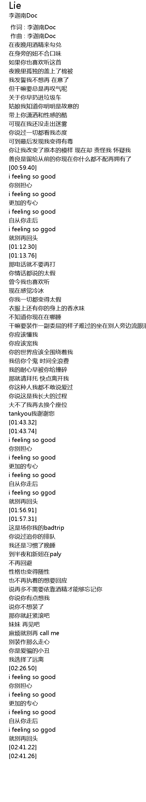 | [01:54.85] | i feeling so ggod |