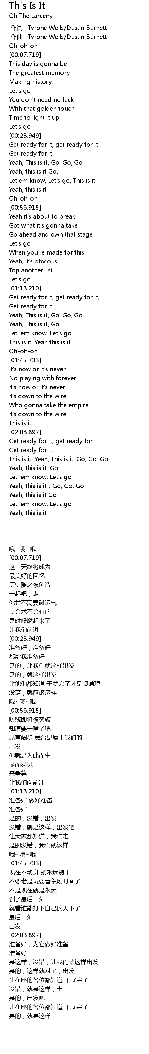 | [00:41.283] | Let' em know, Let' s go, This is it |