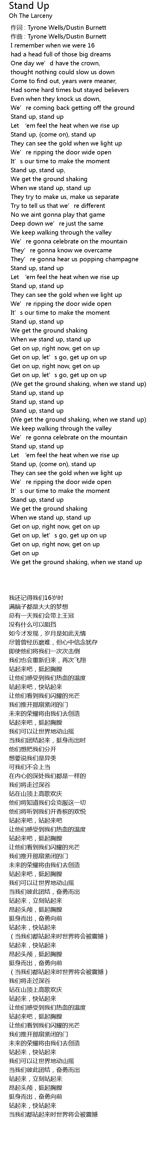 | [00:32.519] | Stand up, stand up |