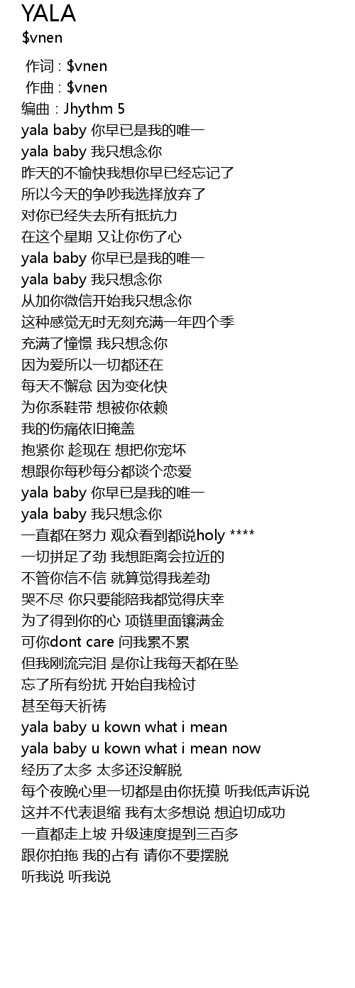 | [00:21.492] | yala baby wǒ zhǐ xiǎng niàn nǐ |