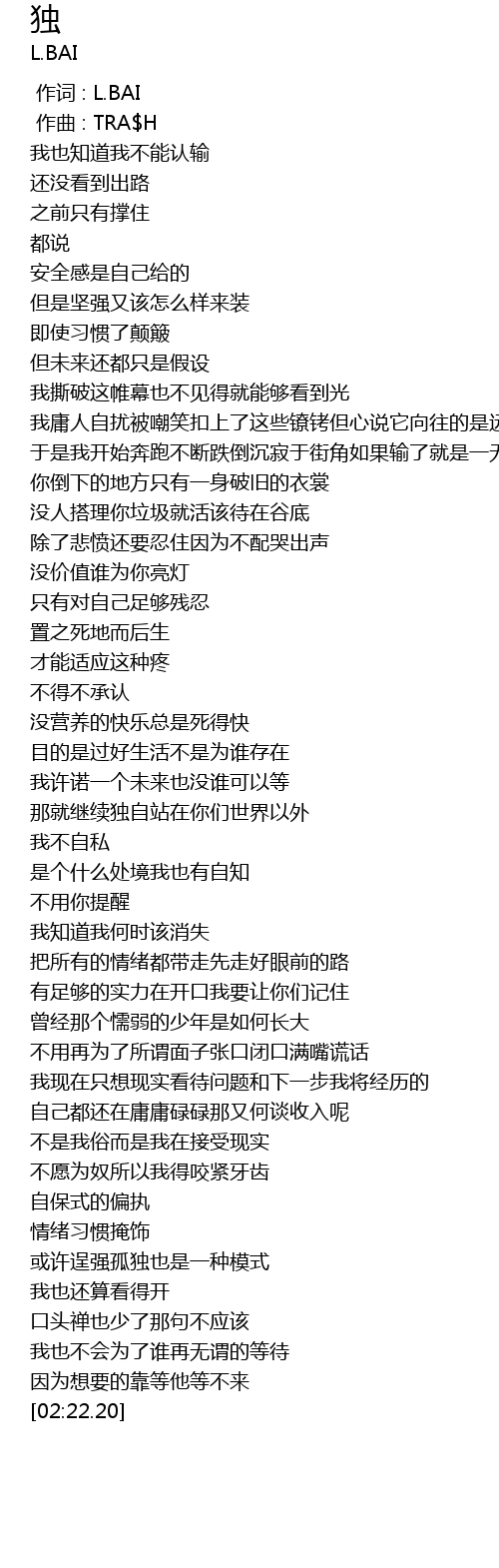 | [00:00.000] | 作词 : L.BAI |