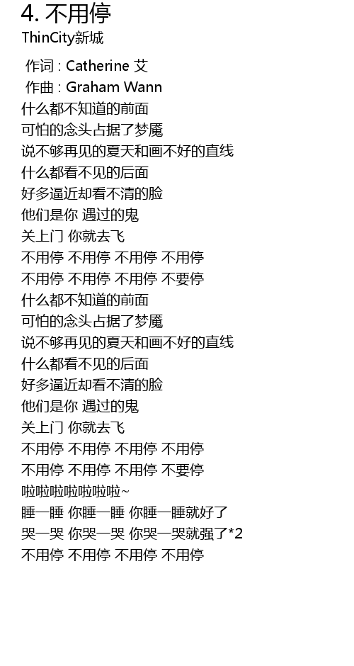 | [00:38.944] | 不用停 不用停 不用停 不用停 |