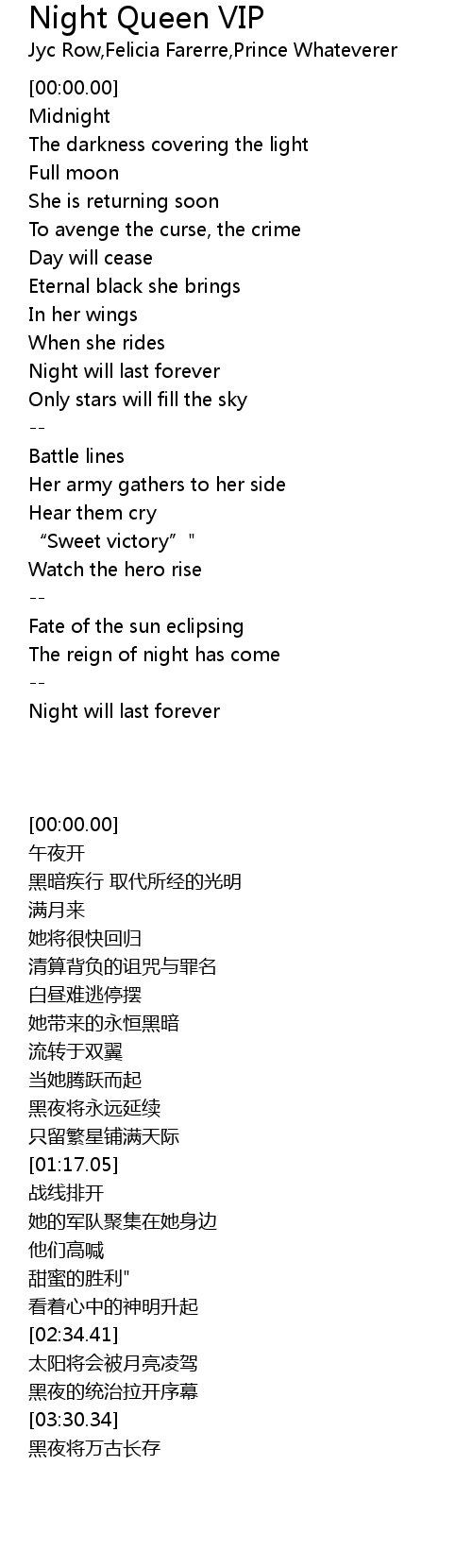 | [04:05.58] | Night will last forever |
