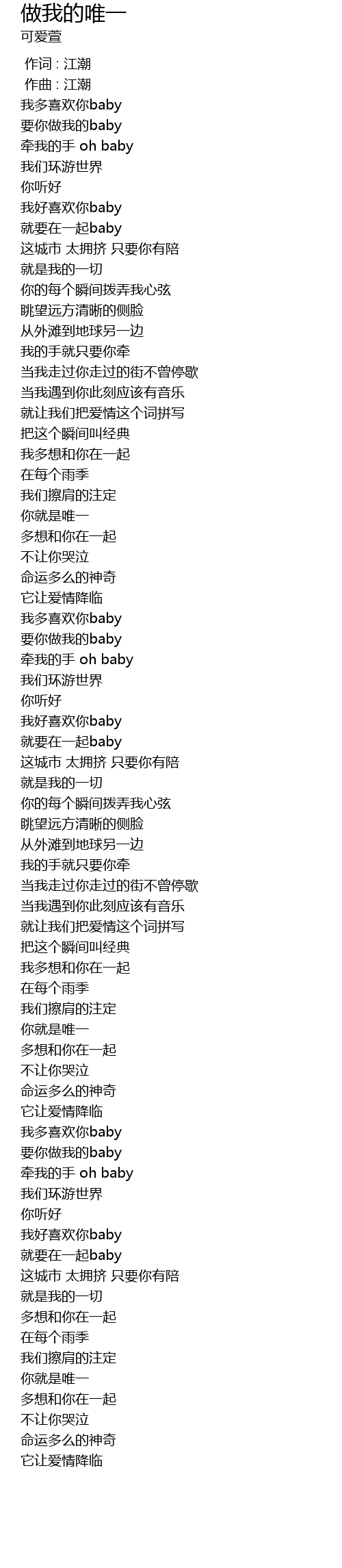 | [00:13.919] | 要你做我的baby |