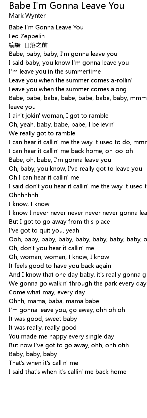 | [00:02.12] | Babe I'm Gonna Leave You |
