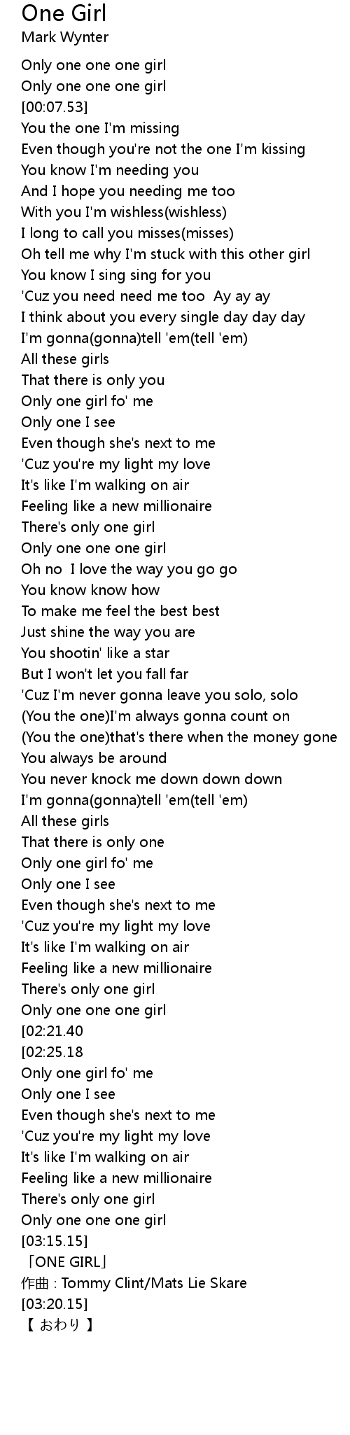 | [01:00.15] | Only one one one girl |