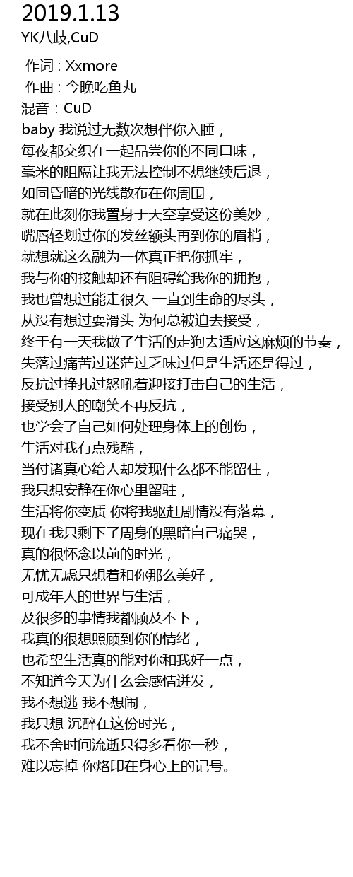 | [00:01.000] | 作曲 : 今晚吃鱼丸 |