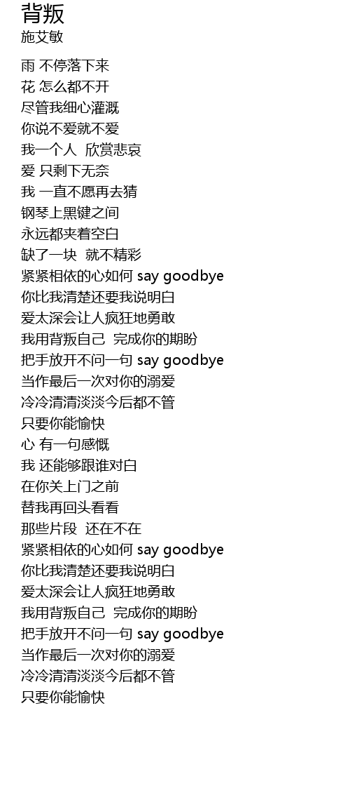 | [03:36.90] | 把手放开不问一句 say goodbye |