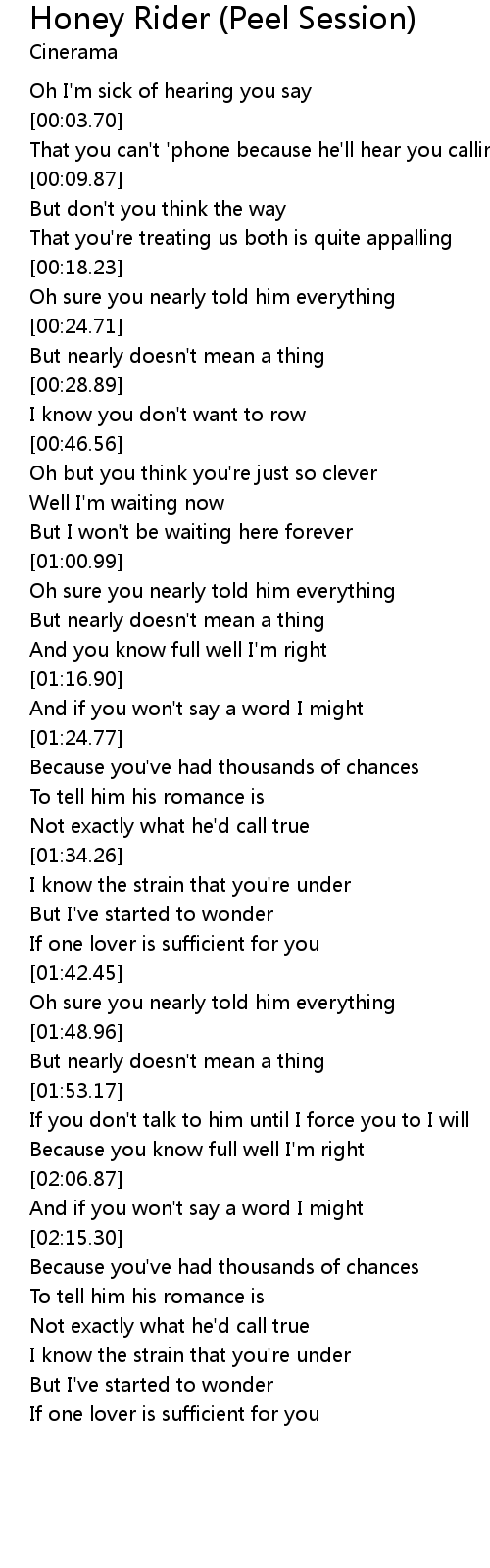 Honey Rider (Peel Session) Lyrics