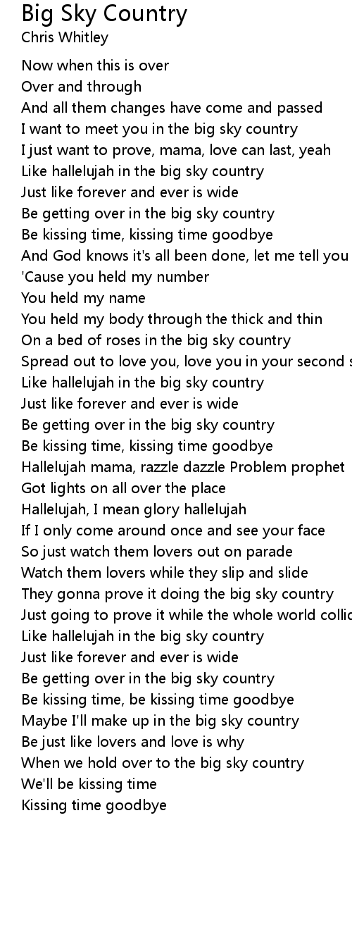 When we hold over to the big sky country |