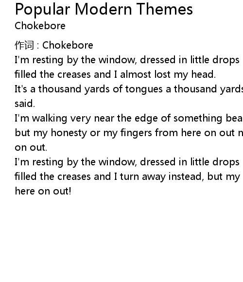 | I' m resting by the window, dressed in little drops of red, but then the silence filled the creases and I turn away instead, but my honesty or my fingers from here on out! |