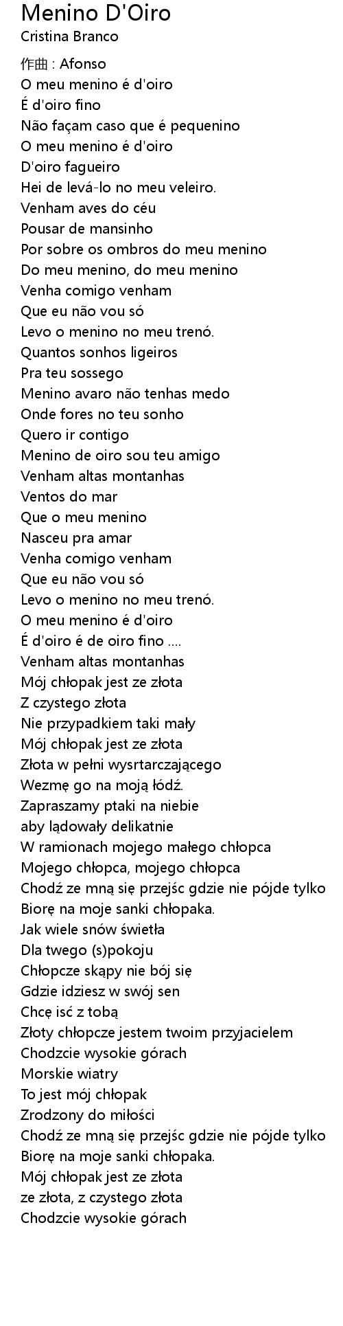 | Song | Menino D'Oiro |