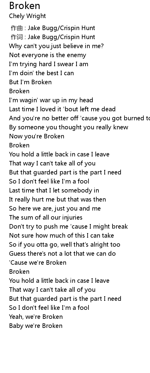 | [02:01.27] | Don' t try to push me ' cause I might break |