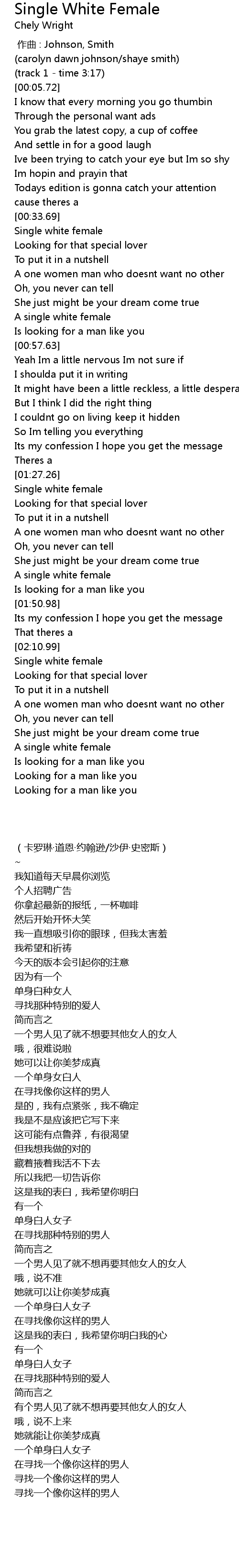 | [01:43.49] | A single white female |