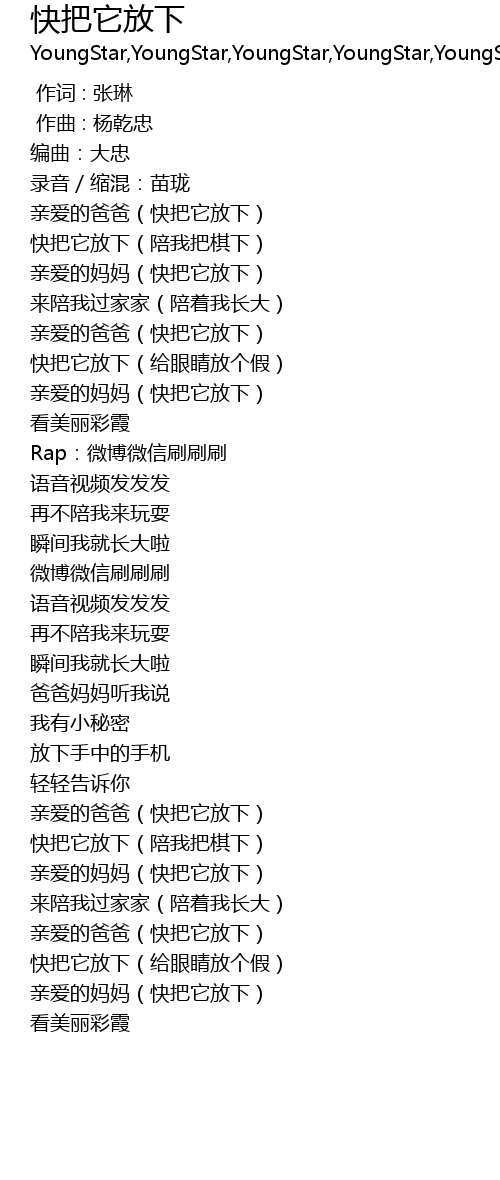 | [00:15.351] | 亲爱的爸爸(快把它放下) |
