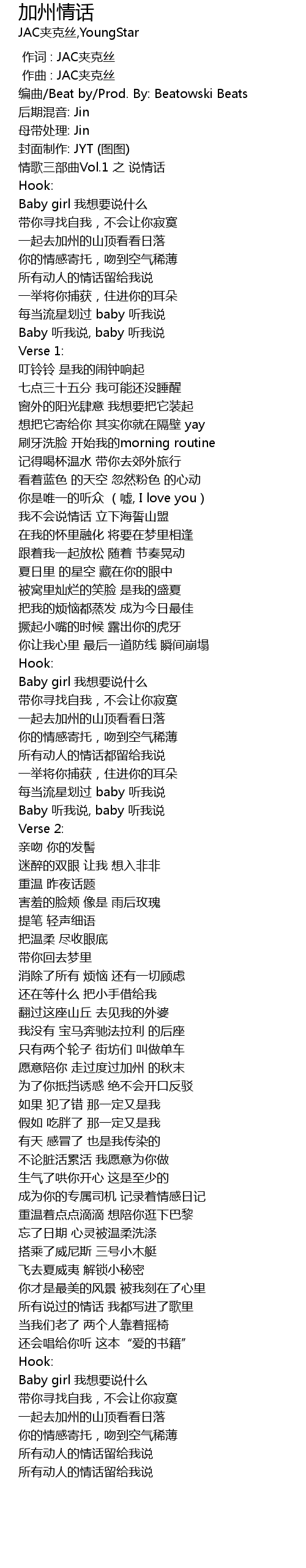 | [00:00.000] | 作词 : JAC夹克丝 |