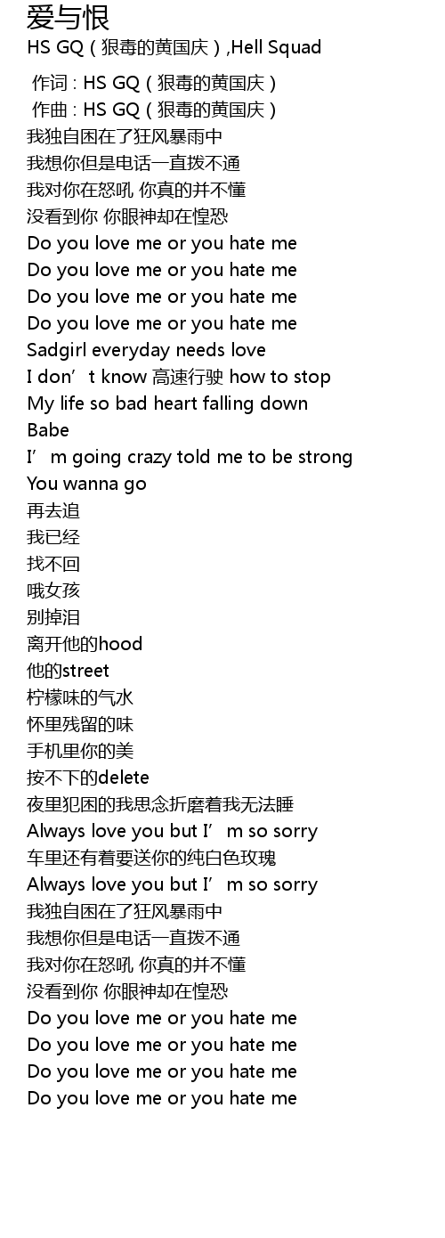 | [00:00.000] | 作词 : HS GQ(狠毒的黄国庆) |