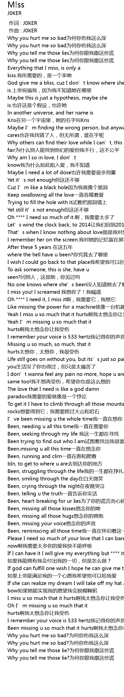 | [02:00.295] | I miss u so much that it hurts啊我太想念你让我受伤 |
