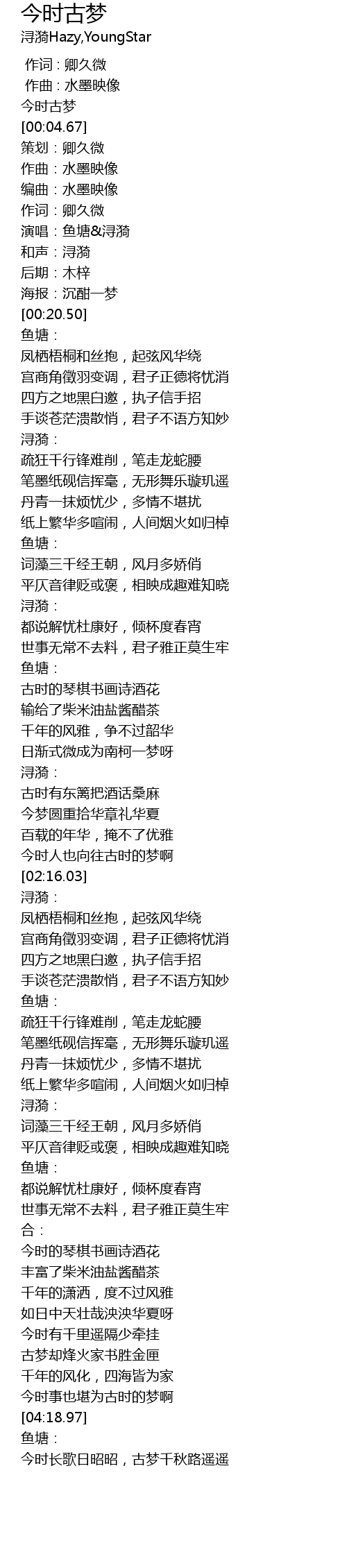 | [04:14.21] | 今时事也堪为古时的梦啊 |