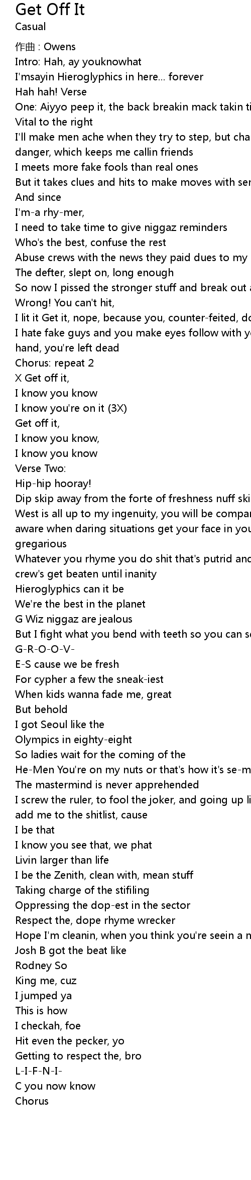 | Song | Get Off It |