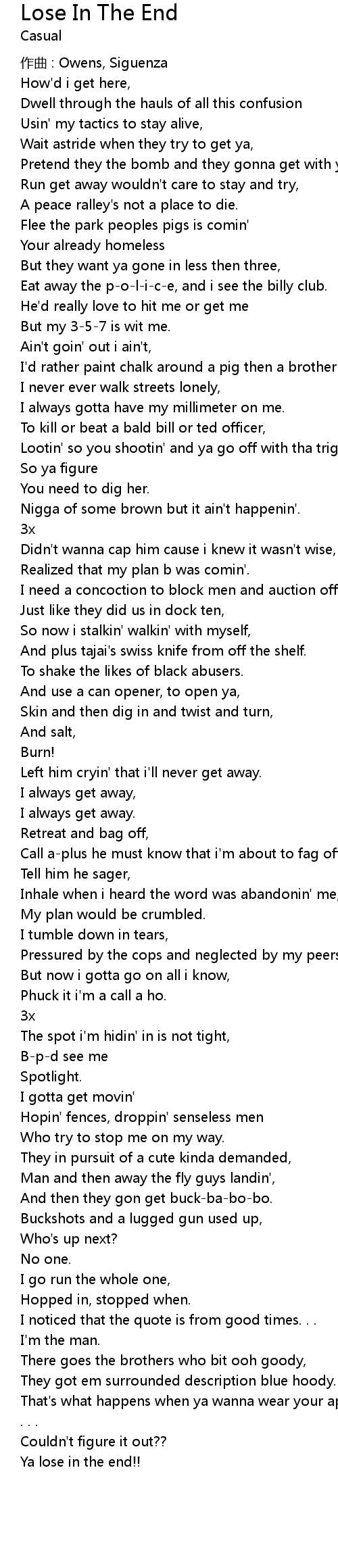 | Song | Lose In The End |