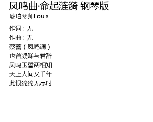 | Song | 凤鸣曲·命起涟漪 钢琴版 |