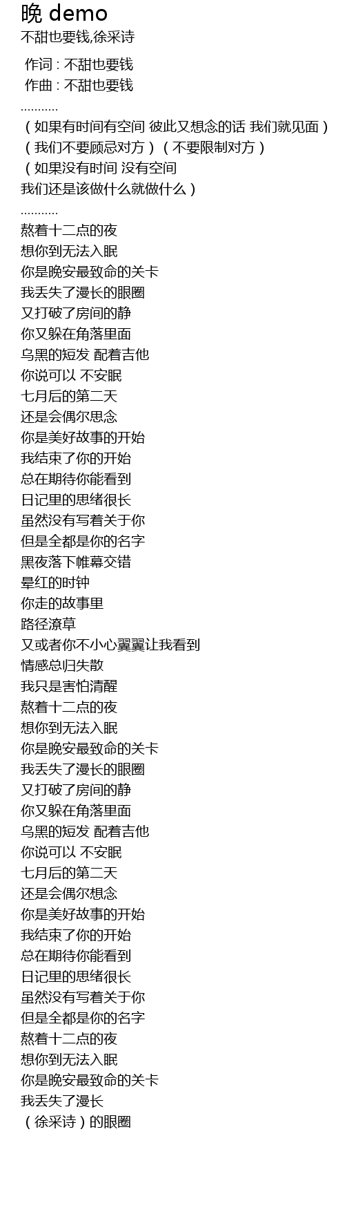 | [00:00.000] | 作词 : 不甜也要钱 |