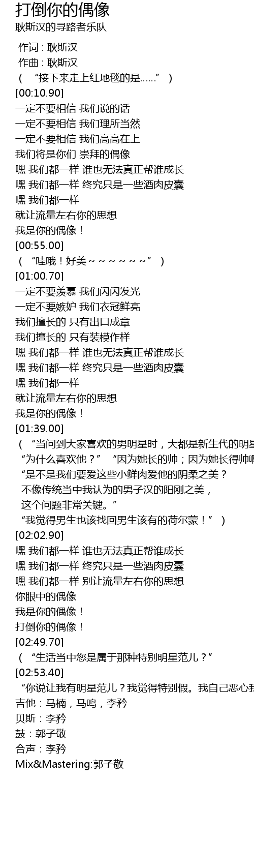 | [02:53.40] | “你说让我有明星范儿?我觉得特别假。我自己恶心我自己。”) |
