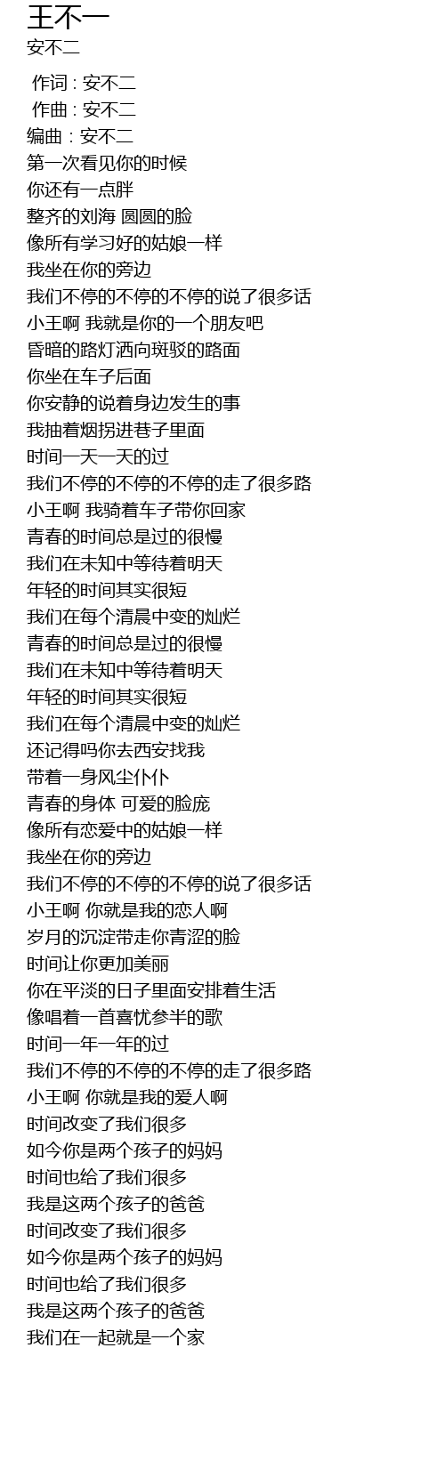| [00:00.000] | 作词 : 安不二 |