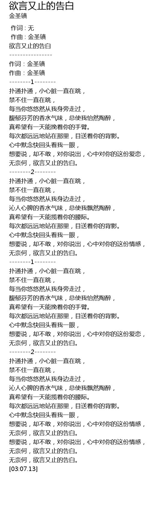 | [03:03.55] | 无奈何,欲言又止的告白。 |