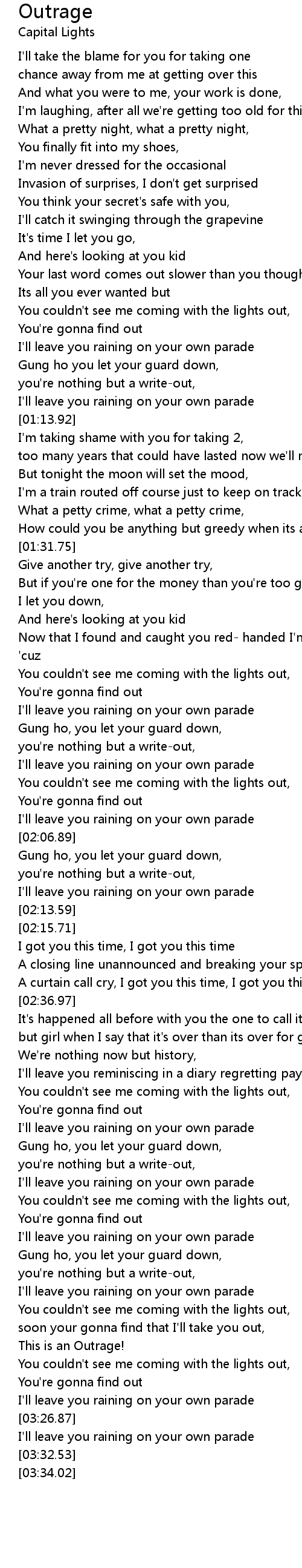 Outrage Lyrics