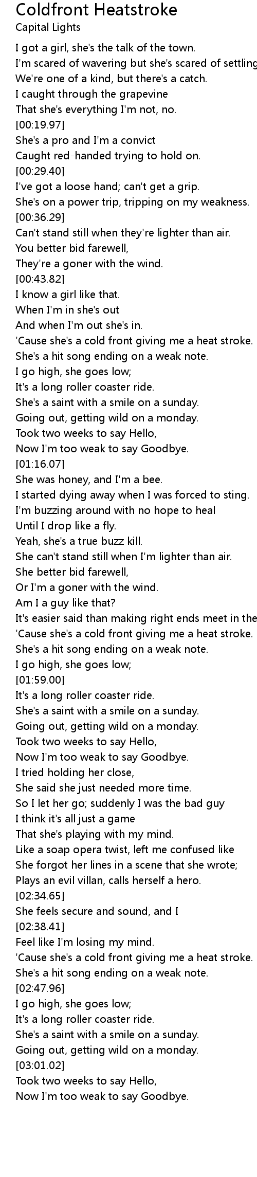 'Cause she's a cold front giving me a heat stroke. |