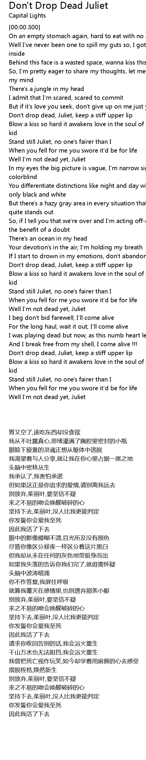 Don't drop dead, Juliet, keep a stiff upper lip |